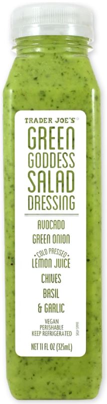트레이더 조의 그린 굿니스 샐러드 드레싱은 아보카도, 파를 저온 압착으로 쥬스하여 만들어진 섬세하고 근본적인 드레싱입니다. 샐러드에 제격이지만, 용도는 그 이상입니다. 야채를 찍어 먹는 딥(dip)이나 샌드위치를 위한 스프레드(spread)로도 활용할 수 있습니다. 신선하고 활기찬 맛을 느낄 수 있을 거에요.