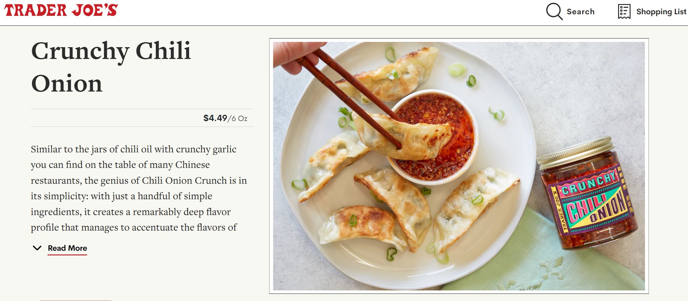 매운 맛을 좋아하고 즐기는 사람들에겐 트레이더 조의 칠리 양파 크런치를 추천합니다. 이 소스는 올리브 오일에 튀긴 마늘, 양파, 으깬 고추 조각을 결합하여 한국 사람들에겐 만두를 찍어 먹거나, 부침개랑 먹어도 좋고, 쌀국수에 곁들여 먹어도 좋으며 파스타와 피자에도 어울리고 구운 야채나 고기에 까지 다양하게 어울립니다.