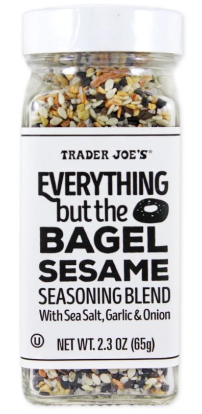 트레이더 조의 에브리띵 벗 더 베이글 세사미 시즈닝 블렌드는 참깨, 마른 마늘, 마른 양파 및 양귀비 씨가 블렌드 되어 있습니다. 이 시즈닝은 계란과 잘 어울려서, 삶은 계란을 찍어먹기도 좋고, 후라이 위에 뿌려도 좋아요. 그 외에는 아보카도 토스트, 샐러드 또는 팝콘에 뿌릴 수 있습니다. 저희 어머니는 시금치 나물을 무친 다음 위에 깨소금 대신 뿌리기도 하세요. 한국인들이 좋아할 맛입니다. 뉴욕을 여행하셨다면 베이글집에서 에브리띵 베이글을 드셨겠죠? 그 시즈닝 맛입니다!